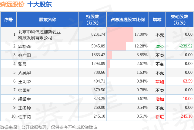 根据森远股份2025年三季报公布的十大股东详情如下: