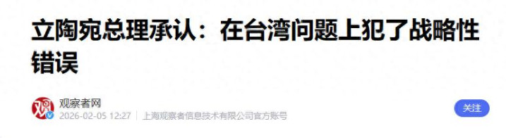 1.《立陶宛总理承认:在台湾问题上犯了战略性错误》2026-02-05 12:27|来源:观察者网